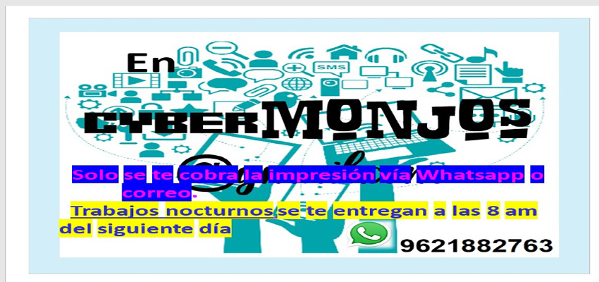 Cobro normal de impresión tamaño carta, oficio, 11 x 17 por WhatsApp o correo electrónico e igualmente los servicios de impresión de trabajos nocturnos que envíen y su entrega al día siguiente a las 8 am. Los domingos no se laboran, en caso urgente se hará entrega los domingos con costo normal de impresión o engargolados, deberán de llamar al número que viene en la publicidad.