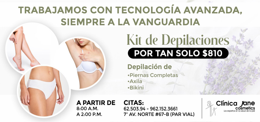 Clínica Jane Cosmetics somos los expertos en el cuidado de la piel. 20 años nos respaldan. Trabajamos con tecnología avanzada; todos nuestros equipos han sido avalados y contamos con certificación para su uso emitido por COFEPRIS y aprobado por la FDA. Para nosotros es muy importante el cuidado de tu piel, es por eso que ofrecemos tratamientos faciales, corporales, reafirmante y depilaciones con productos y equipos de la mejor calidad. ¿Ahora que ya conoces un poco sobre nosotros qué te parece agendar una cita? No dejes pasar la oportunidad. Acude a Clínica Jane Cosmetics. Salud de la piel de por vida.