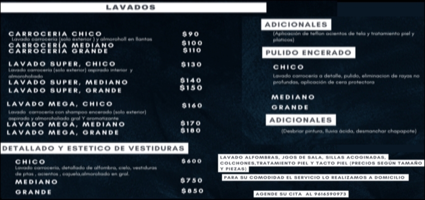 10% DE DESCUENTO EN TODOS LOS TRABAJOS REALIZADOS, DESPUES DE 3 LAVADOS TE REGALAMOS ENCERADO DE TU AUTOMOVIL.